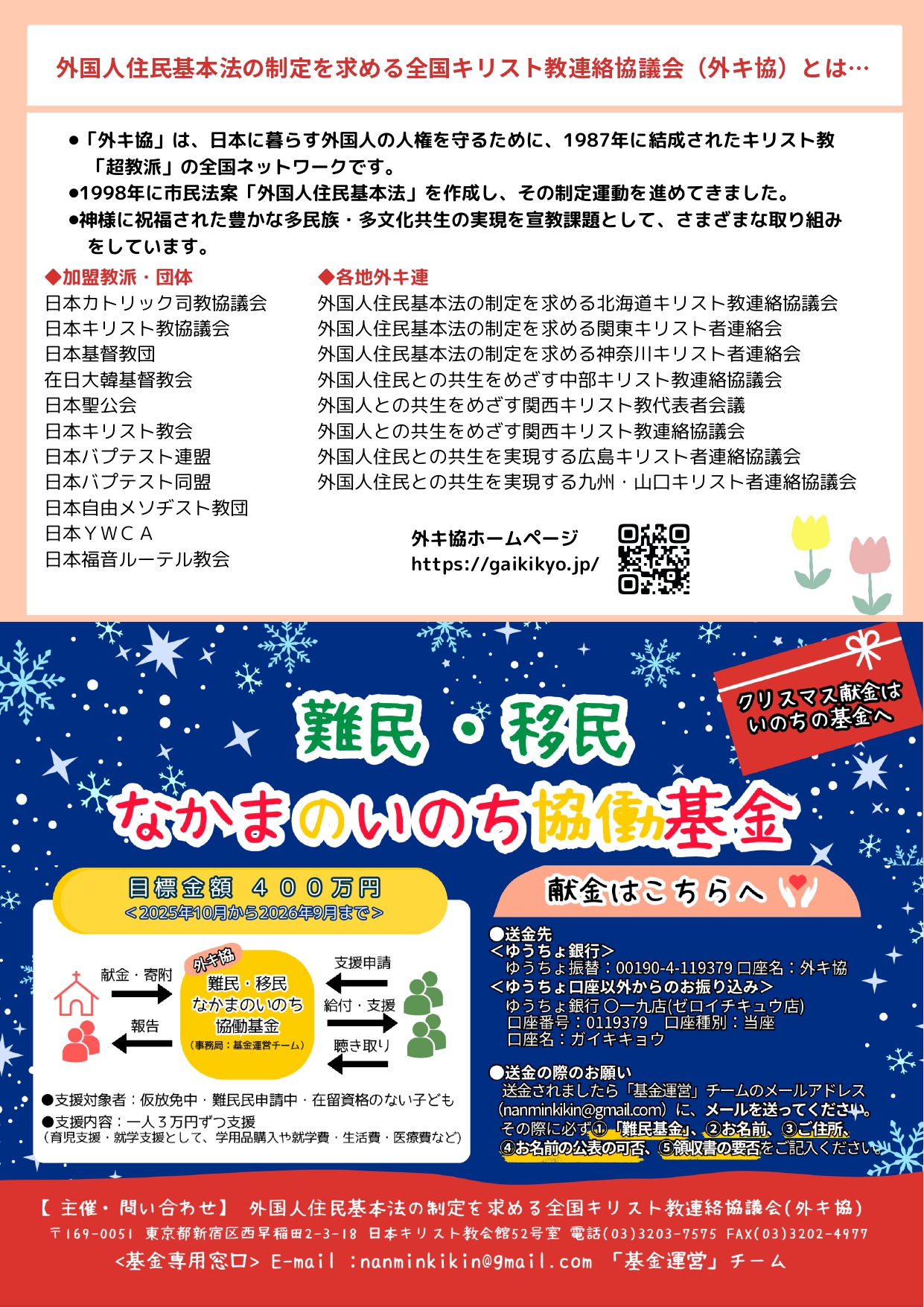 主 管●外国人住民基本法の制定を求める関東キリスト者連絡会(関東外キ連)