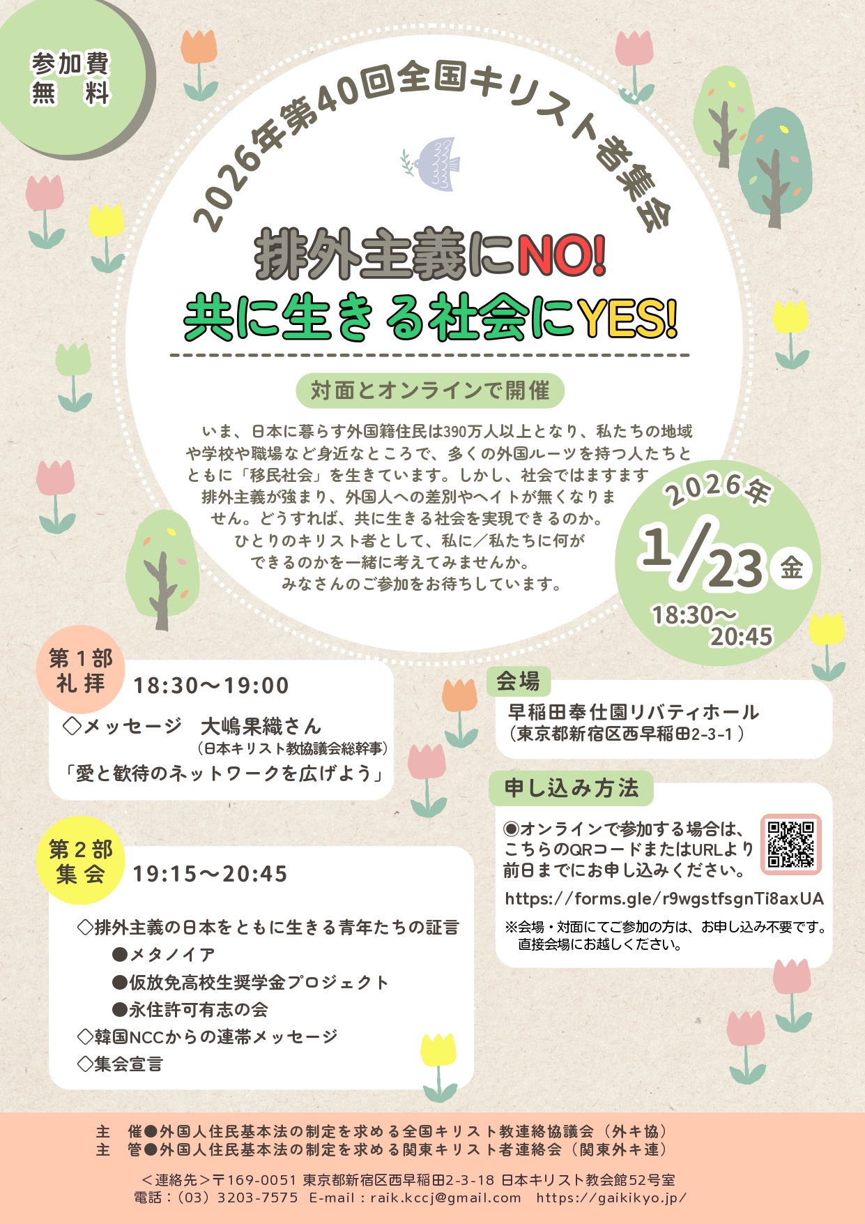 2026年第40回外国人住民基本法の制定を求める全国キリスト者集会